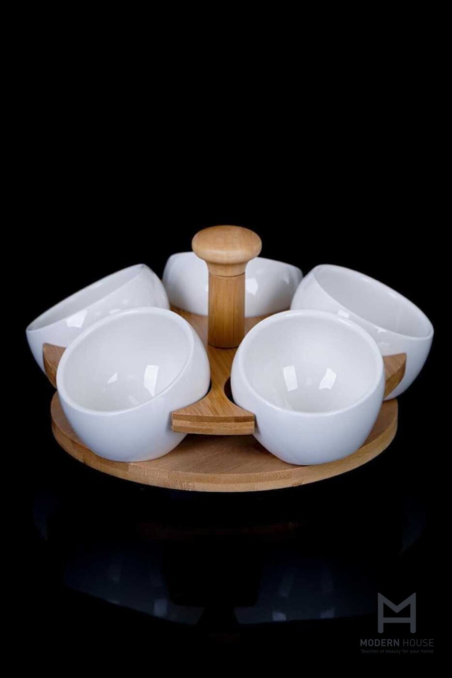 ستاند دوران ٣٦٠ درجة صنع من الباميو مع صحون بورسلان acar