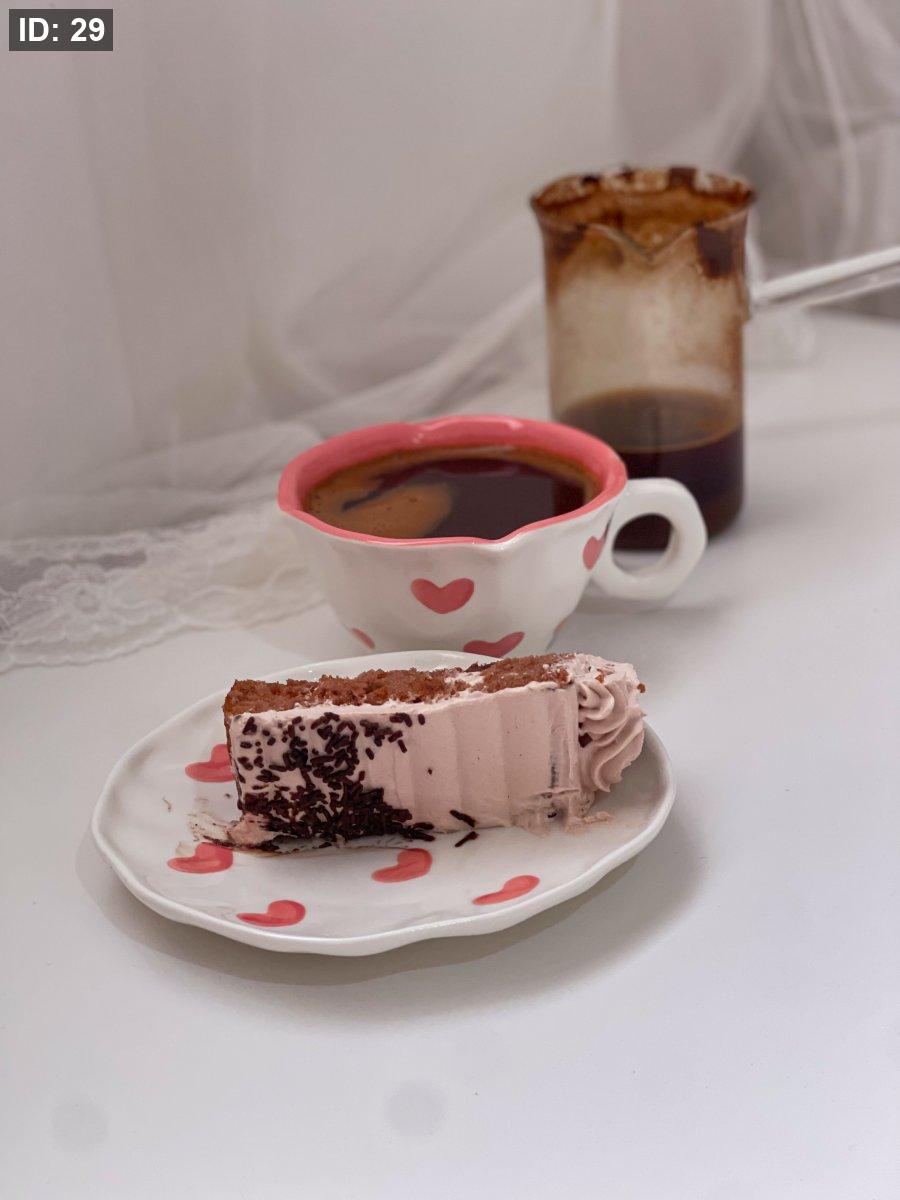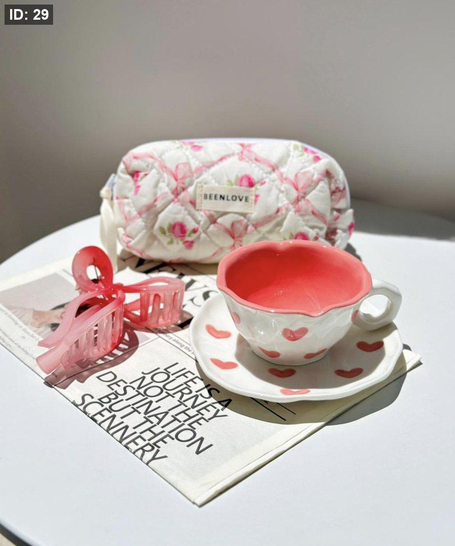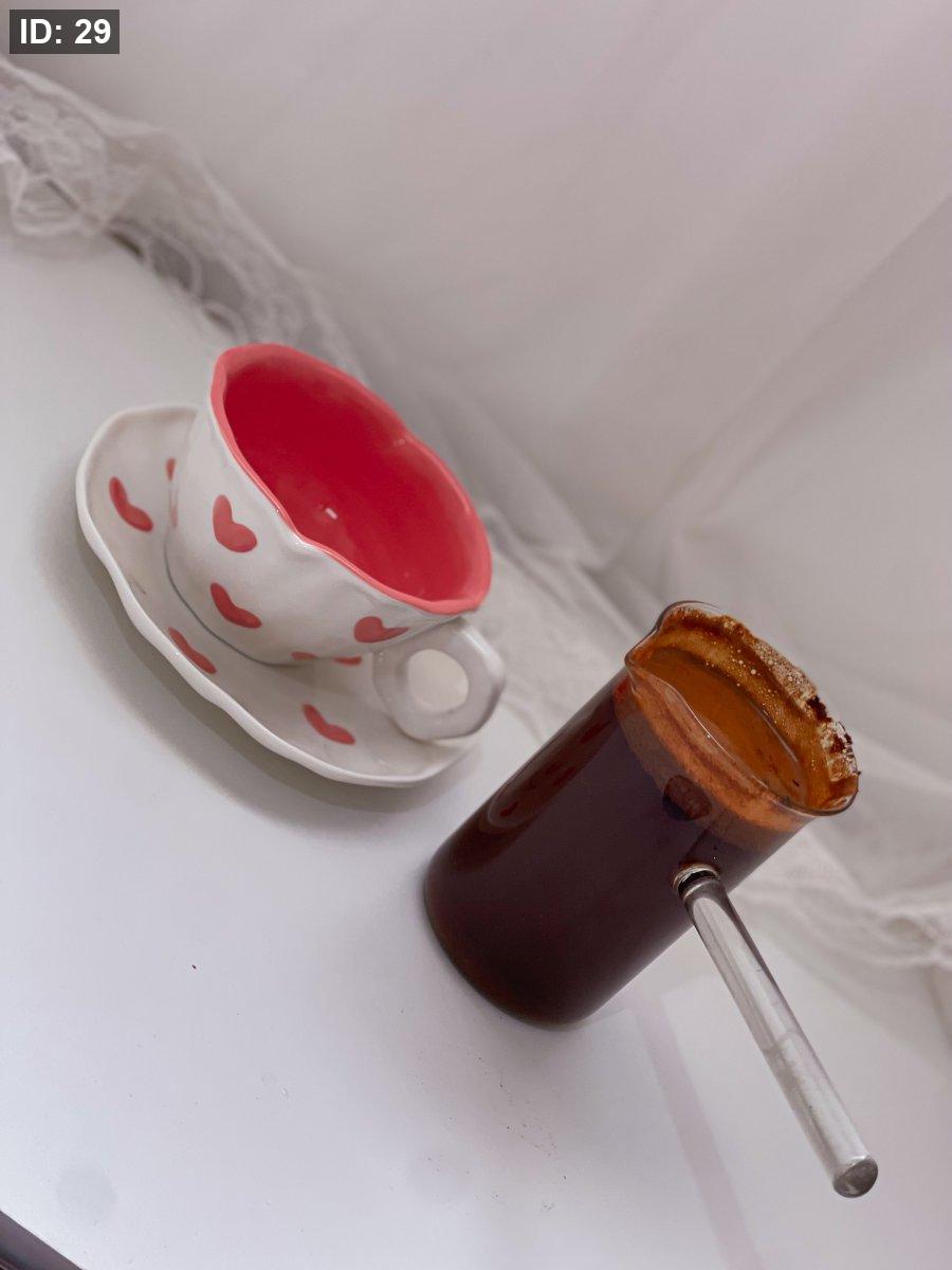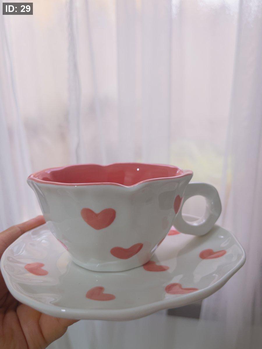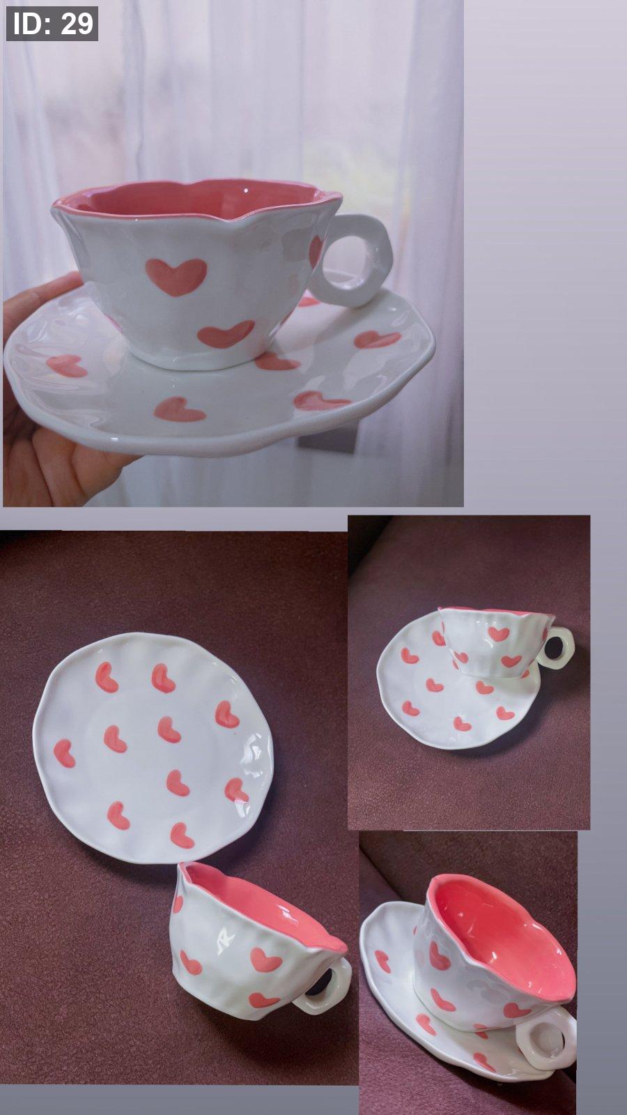 كوب مع صحن قلوب حب