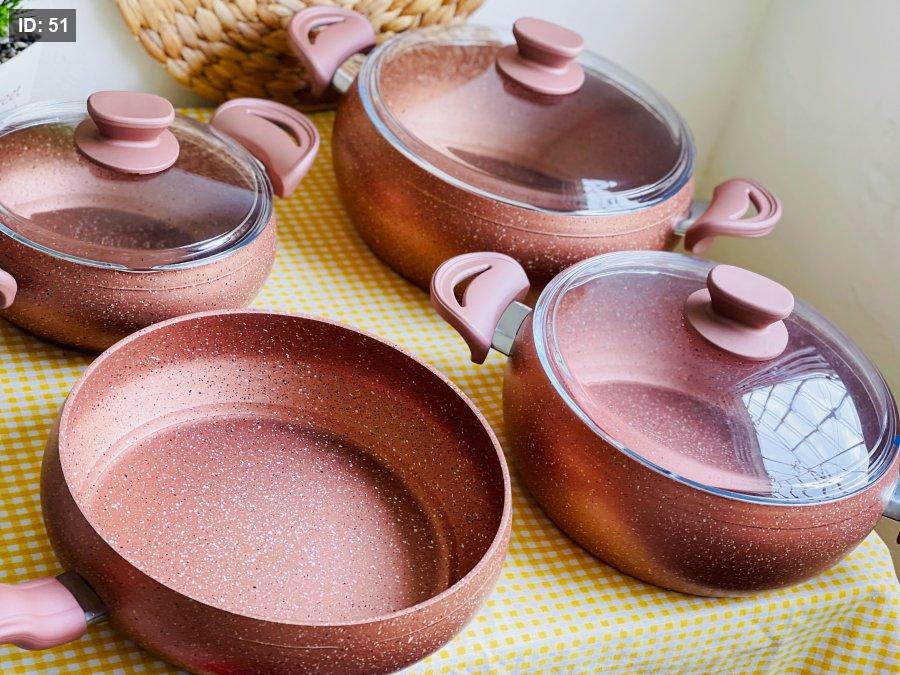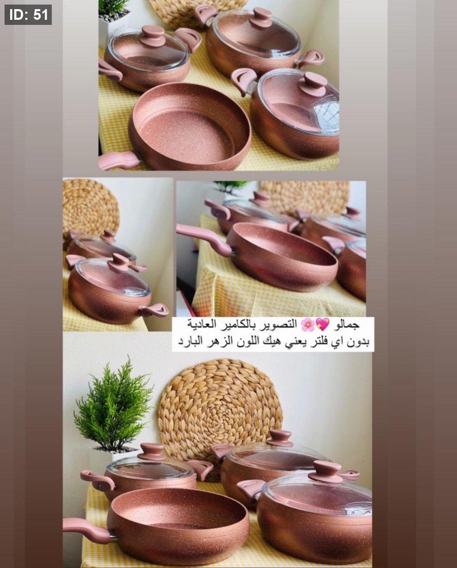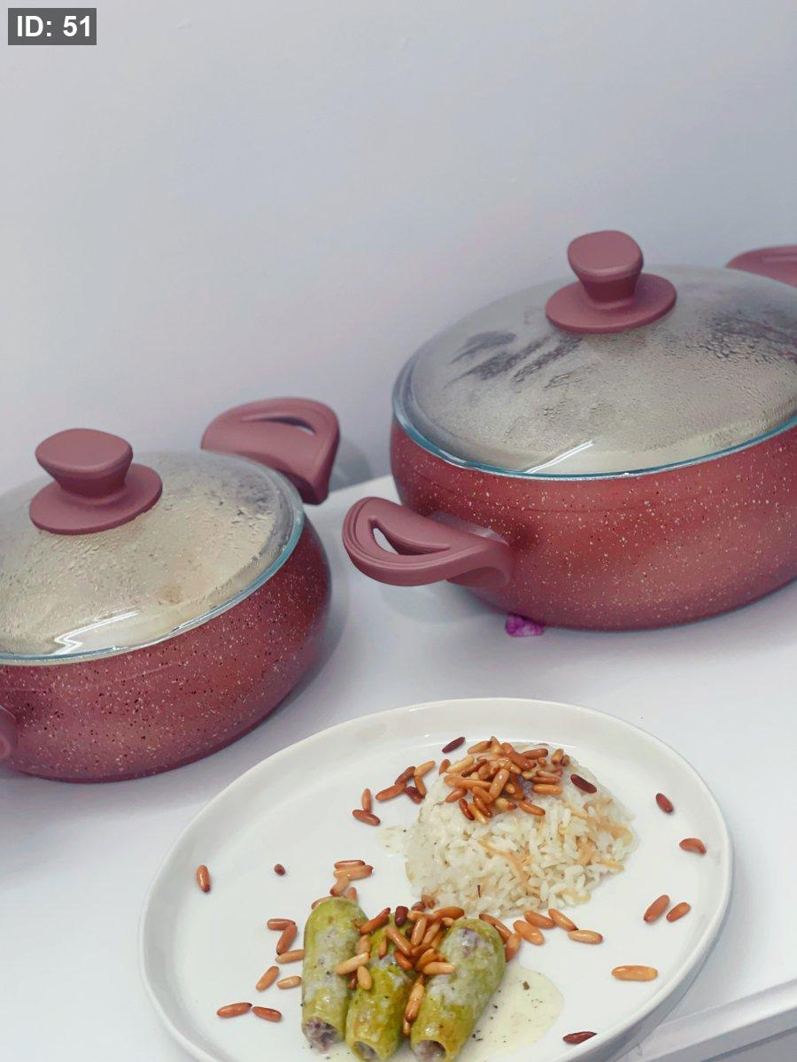مكون من طنجرة مقاس ٢٦ وطنجرة ٢٤ وطنجرة ٢٠ ومقلاة عميقة ٢٦ سم